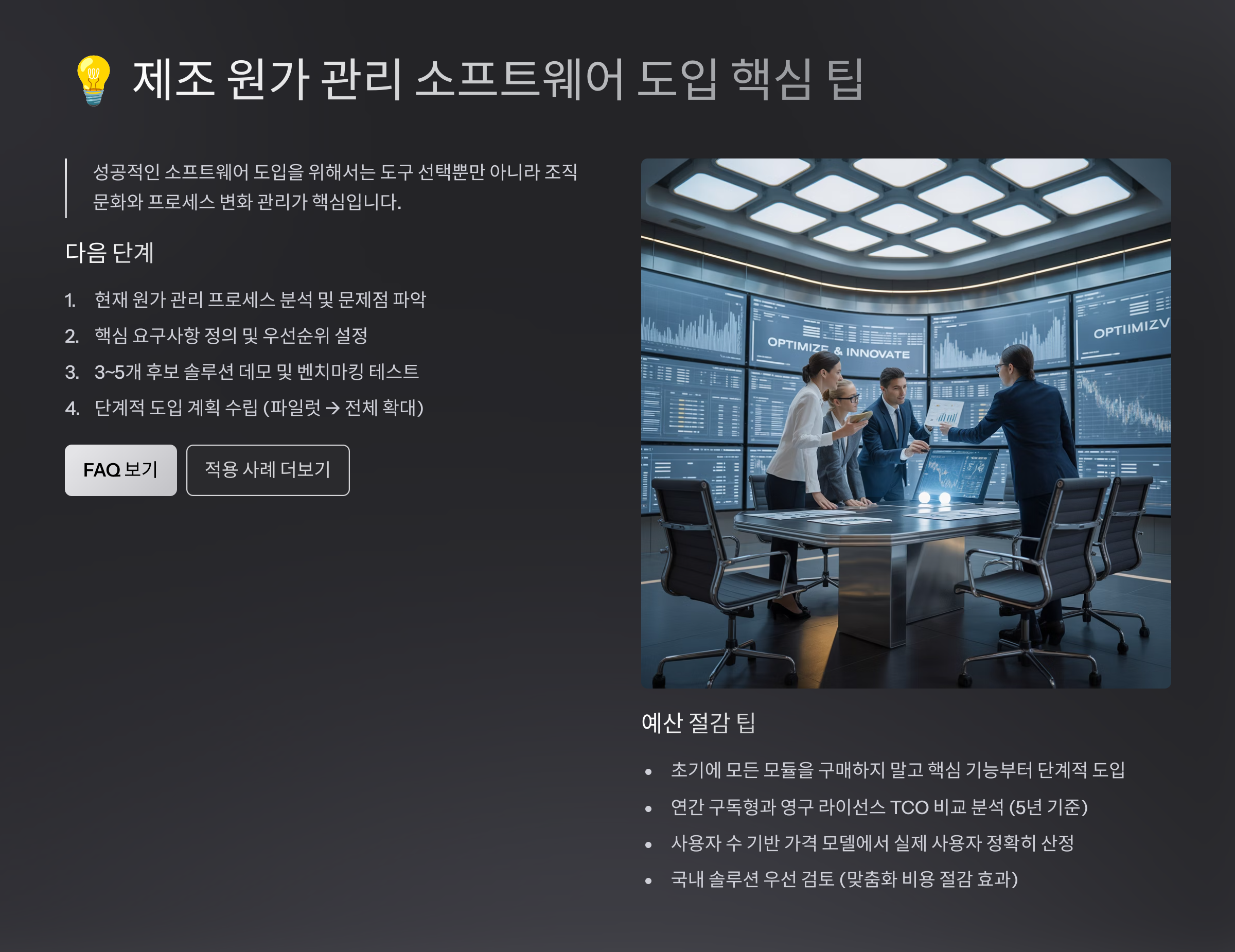 원가 관리 소프트웨어는 도입비용이 부담될 수 있지만, 다양한 절감 방법을 잘 활용하면 초기 비용을 크게 줄일 수 있어요.